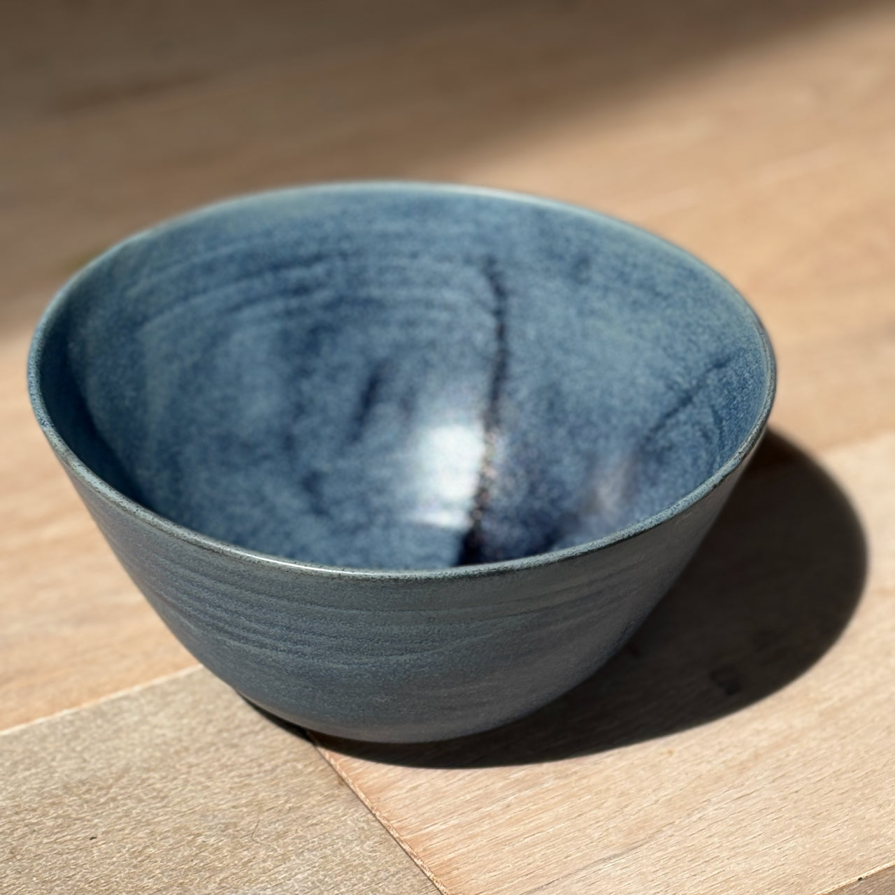 Wheel thrown sanded stoneware fruit/salad/serving bowl, in a satin matte glaze.
