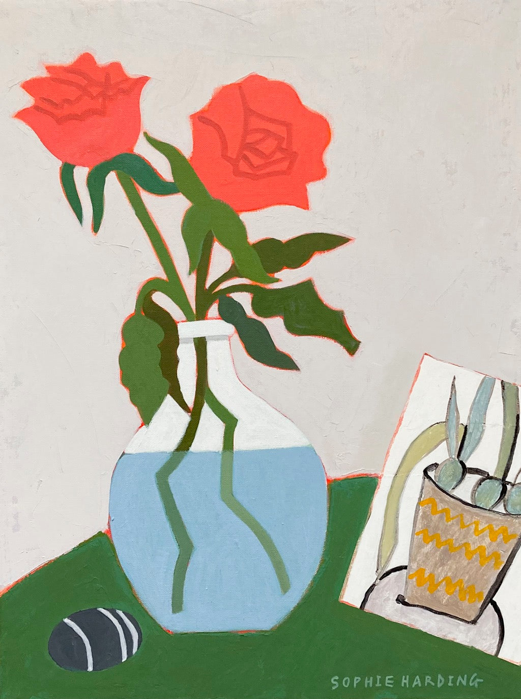 Sophie's work is all about simplicity, harmony, and the power of colour in its ability to glow, clash or sing. By simplifying objects and scenes she aims to create feelings of joy, escapism and calm with a focus on the small and simple joys in life. Working mainly from life and from sketches, Sophie paints moments from her life: a collection of objects in the home, seasonal fruit and flowers, a morning spent on the beach or garden.