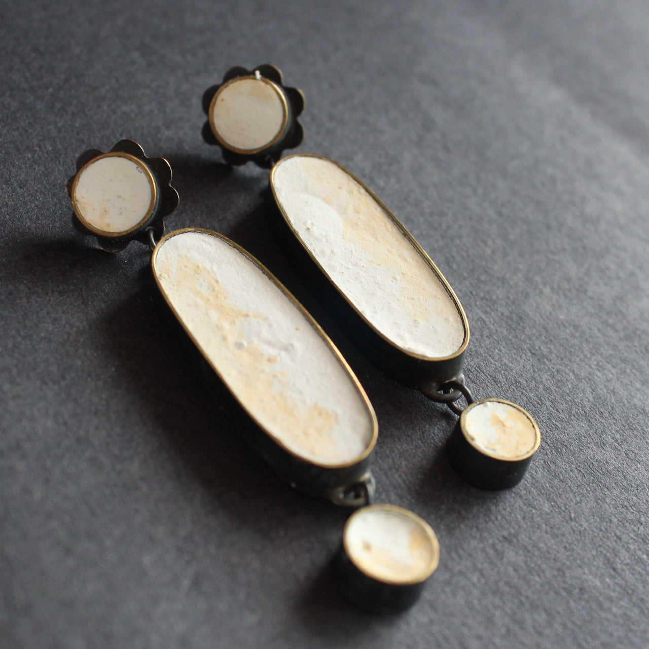 Amy brings together both common and precious materials to create bold, contemporary jewellery. Whilst studying at Sheffield Hallam University, Amy became inspired by the city's combination of modern, industrial architecture and large green spaces. Amy's unique designs combine cement with metal work. Cement is found in almost every building throughout the world's cities, but the material is often under-appreciated and its beauty can be overlooked. Within her designs, Amy sets elements of nature such as moss and lichen forging a connection between architecture and agriculture. Amy's striking and modern jewellery is designed to grow with the owner, be worn and adapt to their personality and bridge the connection between the wearer and their surroundings.