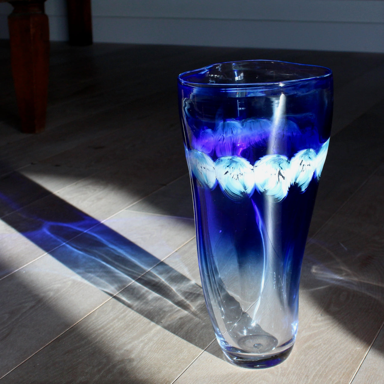 In 2020 his ‘Sigma’ series of work was selected for the Milano Vetro 35, and he was invited to show his ‘Aegean’ series at the Venice Glass Week. Whilst showing in Venice, Benjamin was invited to join the staff at Wave Murano Glass and he now lives and works on the island of Murano in Venice making his artwork at the glass factory.