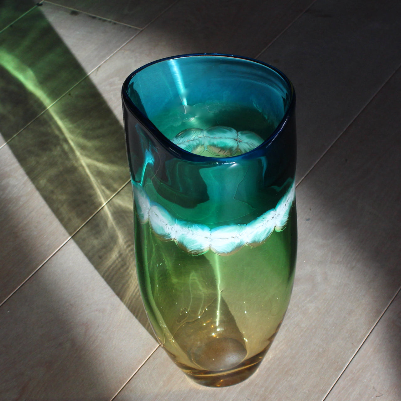 In 2020 his ‘Sigma’ series of work was selected for the Milano Vetro 35, and he was invited to show his ‘Aegean’ series at the Venice Glass Week. Whilst showing in Venice, Benjamin was invited to join the staff at Wave Murano Glass and he now lives and works on the island of Murano in Venice making his artwork at the glass factory.