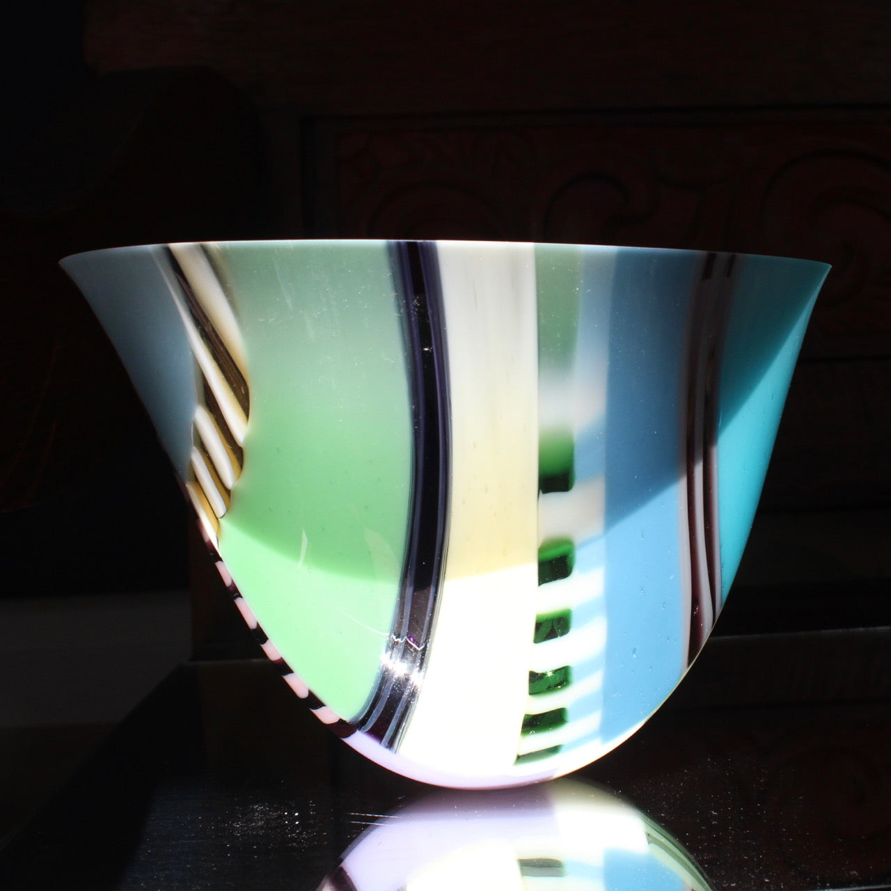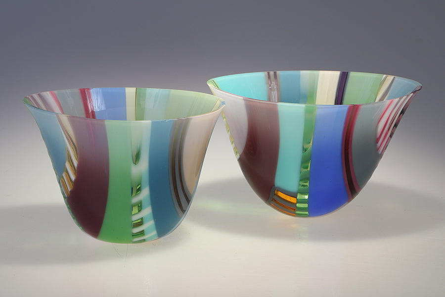 Ruth Shelley specialises in contemporary glass design. Her works' signature is the use of vivid, dramatic colour in kiln formed glass. Taking her cue from her love of traveling, Ruth Shelley's inspirations derive from her observation of colour, balance and tone of nature. Through layered glass she creates a dialogue of lines, patterns and colour. Ruth always observes how the colours and layers combine as a whole, and how light illuminates them.