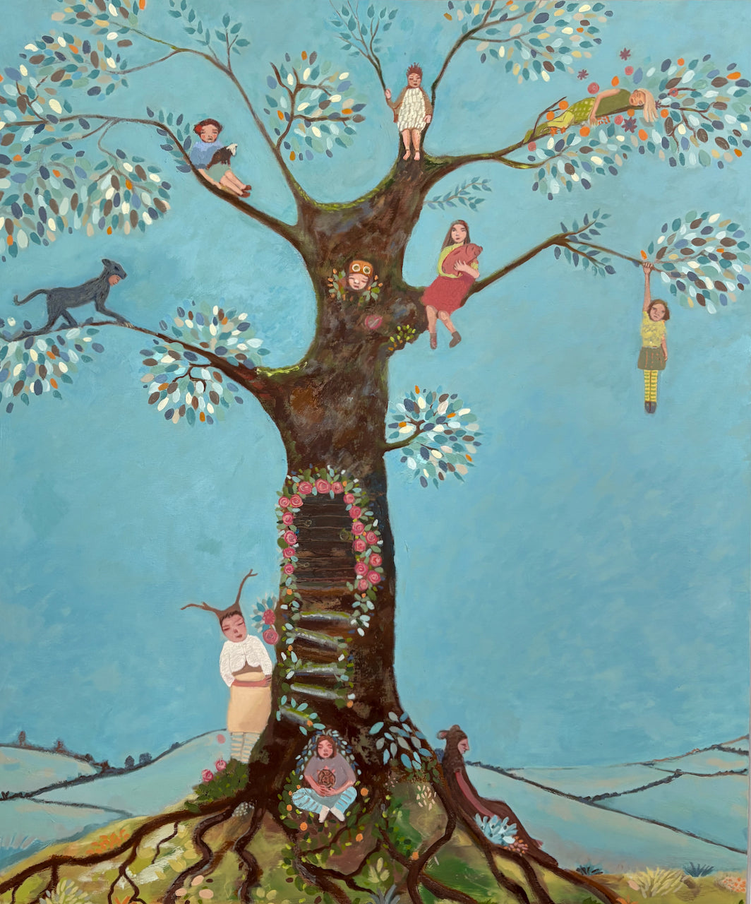 Subject matter and narrative are important to Siobhan: she likes to paint people, particularly children and animals, and is constantly scanning everyday images looking for the one that makes a great painting. She then mentally stores the image and in time it will re-emerge natural allowing her to relive the experience through painting. Siobhan often uses animal features combined with human figures to enhance the expression of character and to create an element of extended reality, emphasising the dreamy qualities of her work.