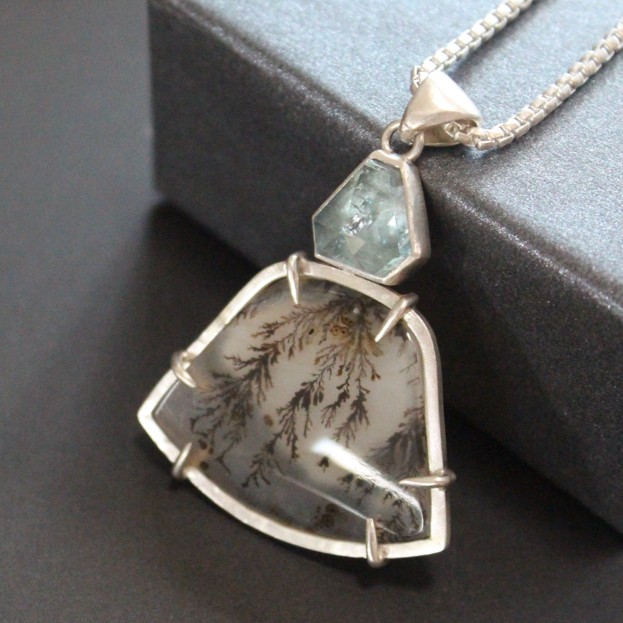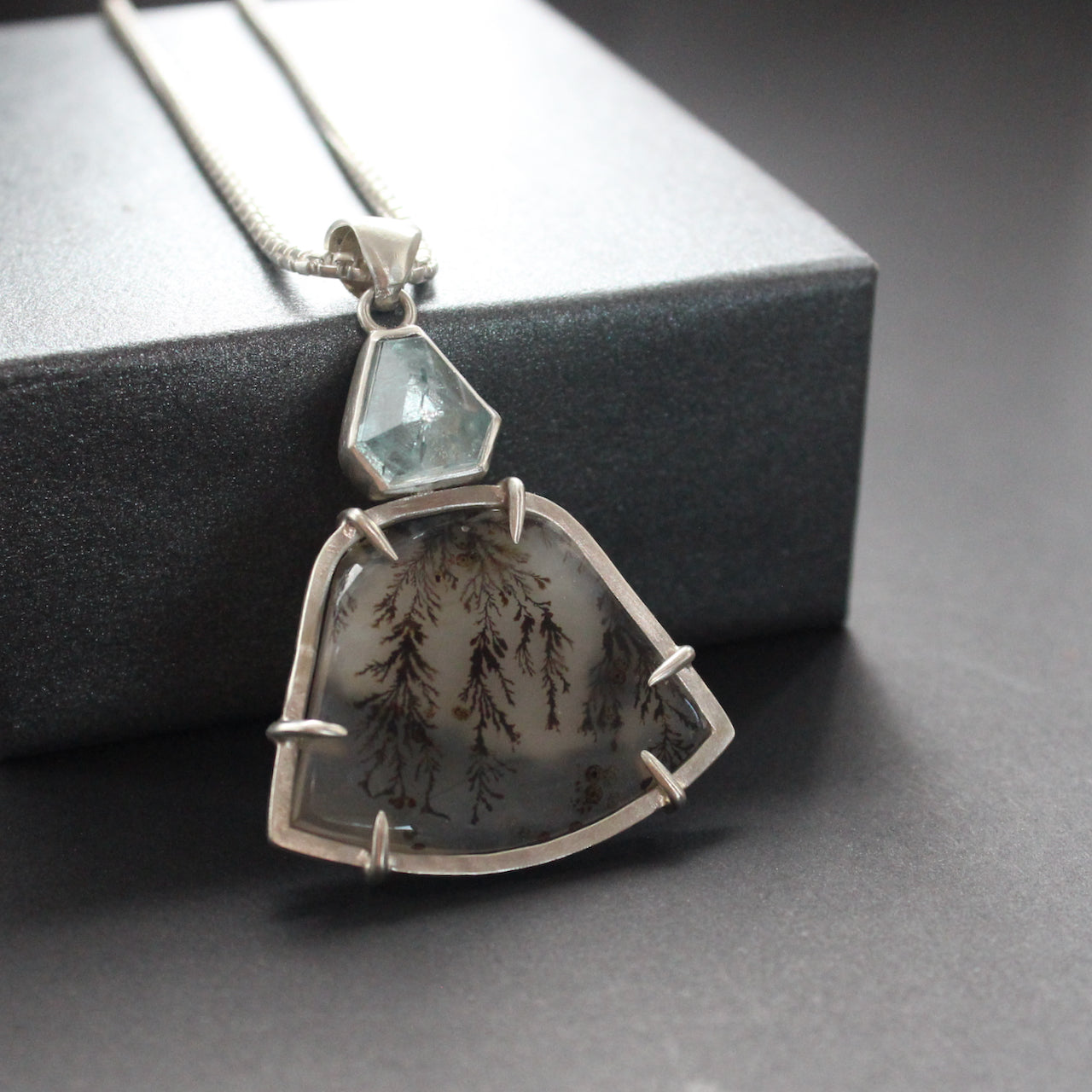 Carin Lindberg - Aquamarine and dendritic agate pendant in brushed silver
