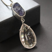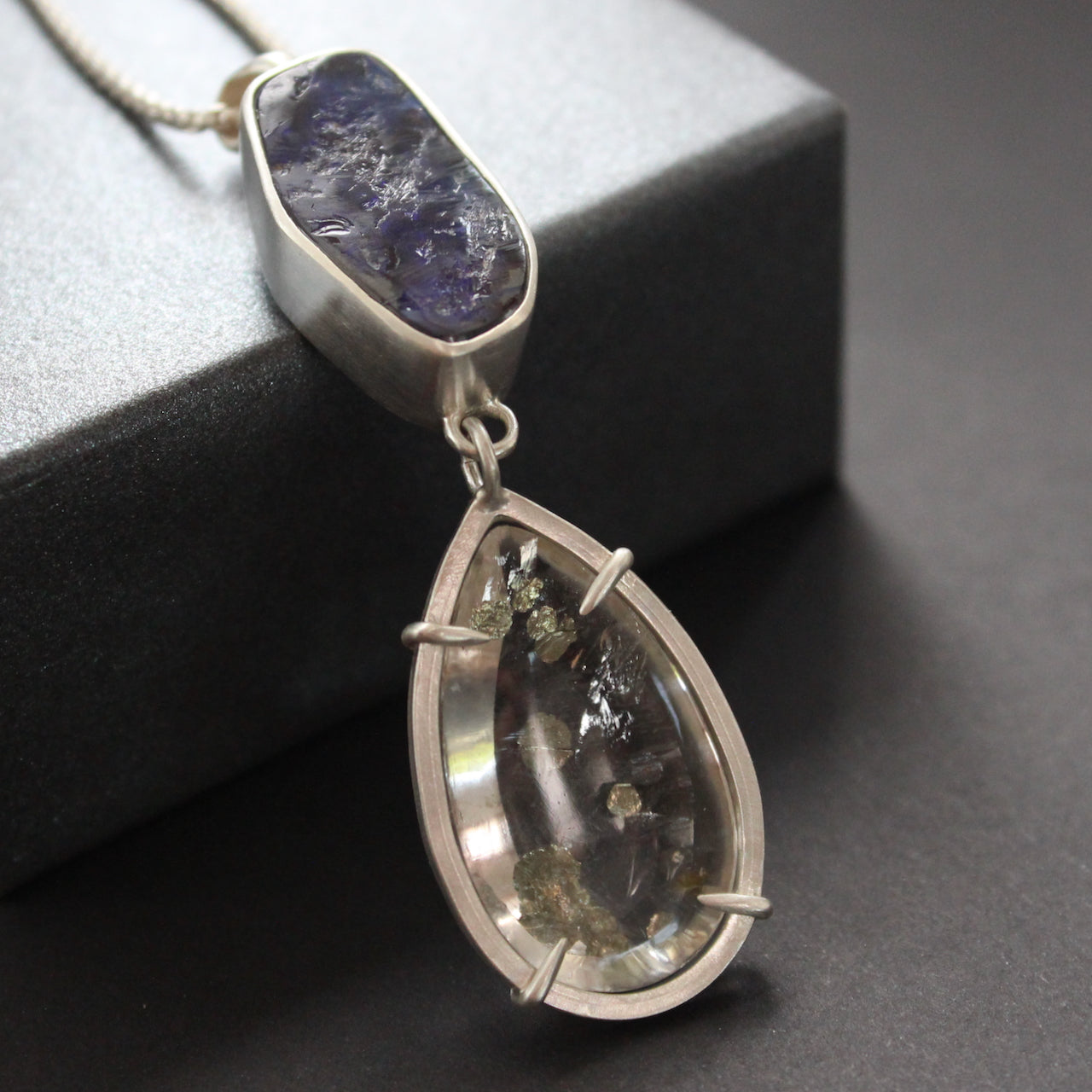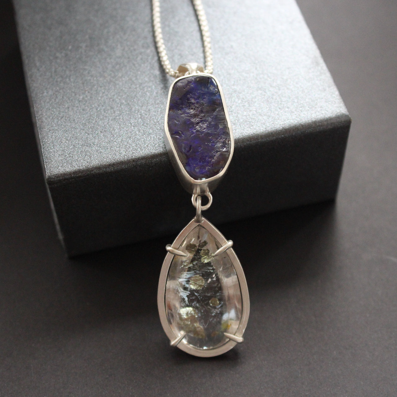 Carin Lindberg - Boulder opal and pyrite in quartz pendant in brushed silver