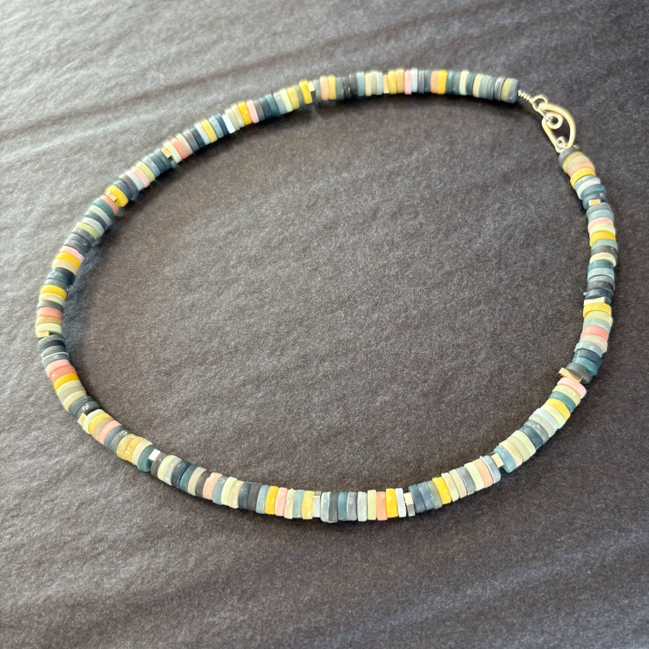 Clare Lloyd - Tiny Disc Circlet Necklace - Blue and Yellow Woad, Pinks and Green