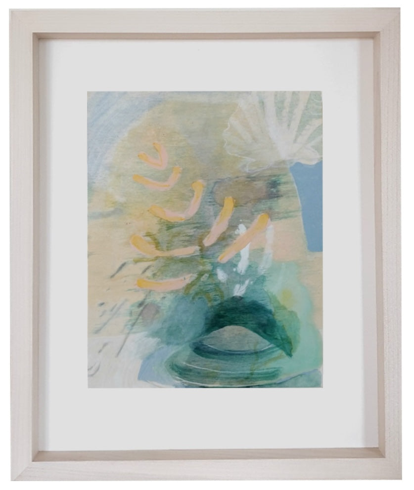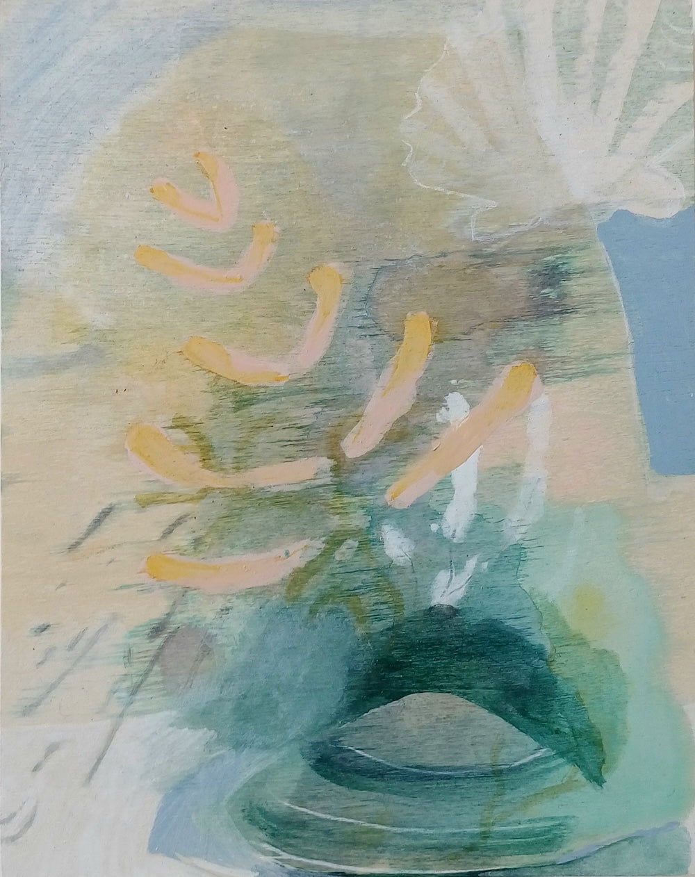 Originally from London, Tara Leaver is an artist and teacher living by the sea in Cornwall, UK. Tara is happiest near - or preferably in - the sea, where she swims as often as she can. She immerses herself in the multi-sensory experience of it, taking photos underwater, looking and feeling into the abundance of life above and below the waves. Back in the studio, she weaves together elements from the photos, memories, and gathered seaweed, to distill those experiences into paintings.