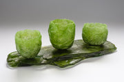 Caroline uses two main glass-working methods: lost wax casting and pâte de verre (a paste made from glass powders and grains) where glass is blended to make vessels that capture the ephemeral beauty and colours of the shoreline.