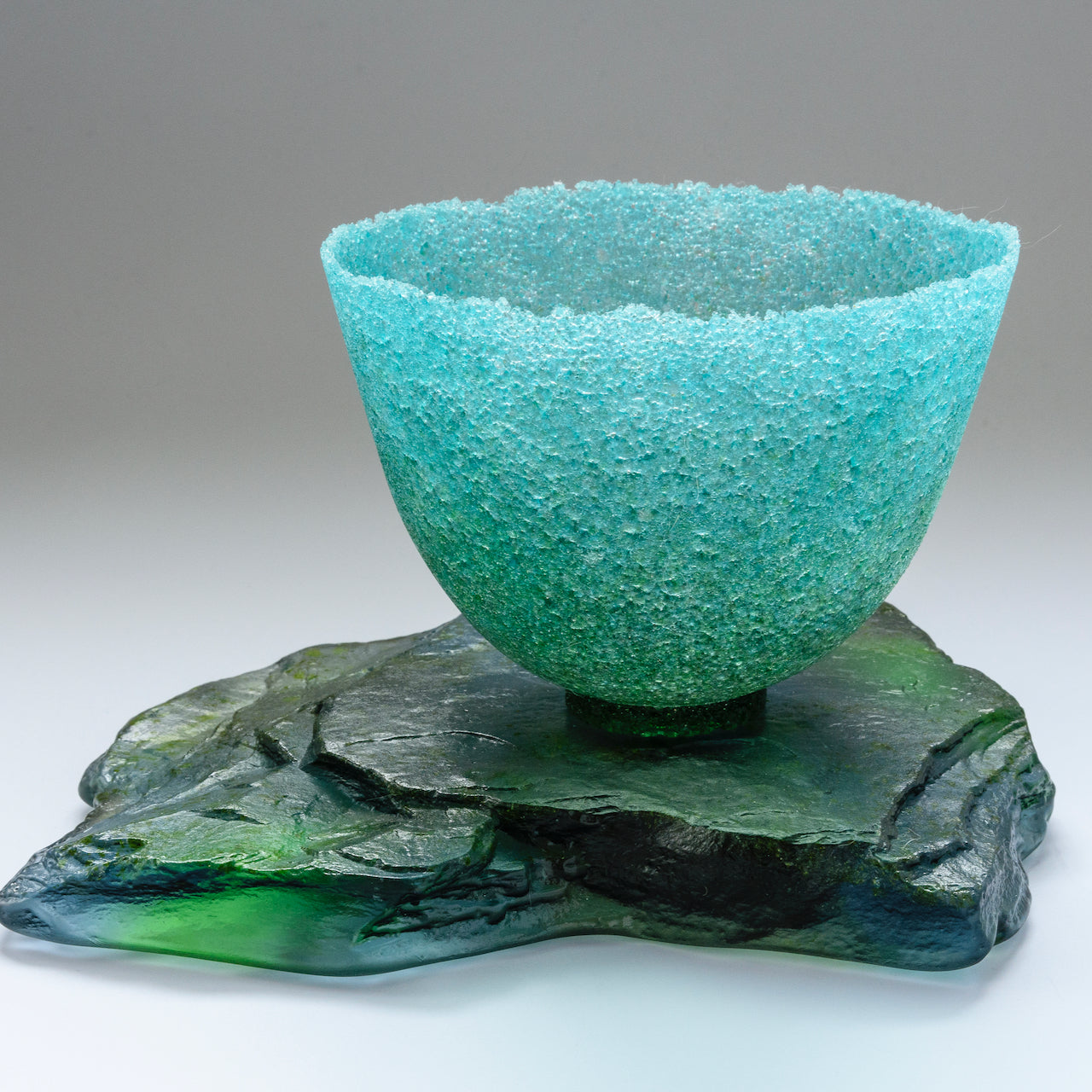 Pâte de verre vessel. Graduated Aquamarine facet cut vessel