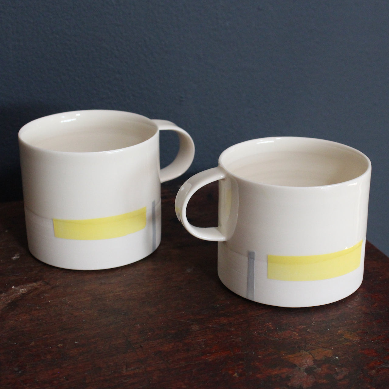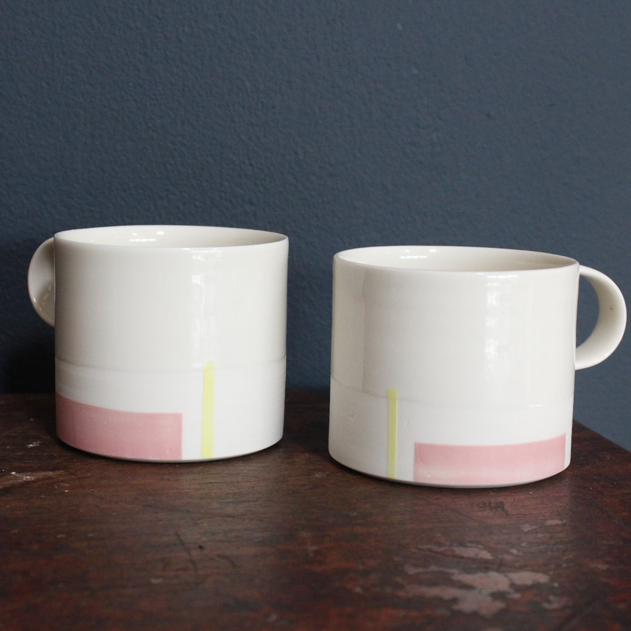 Kathryn Sherriff - By the Line Pottery - Pair of porcelain Mugs