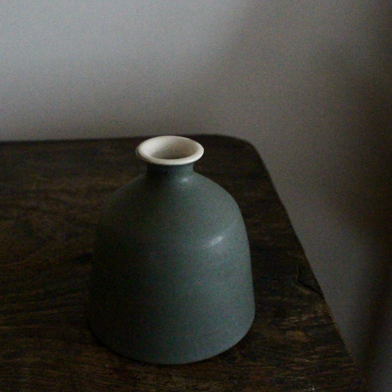Wheel thrown ceramic bud vase using a white stoneware Cornish clay, glazed on the interior with a glossy water-tight transparent glaze and on the exterior with grey glaze.