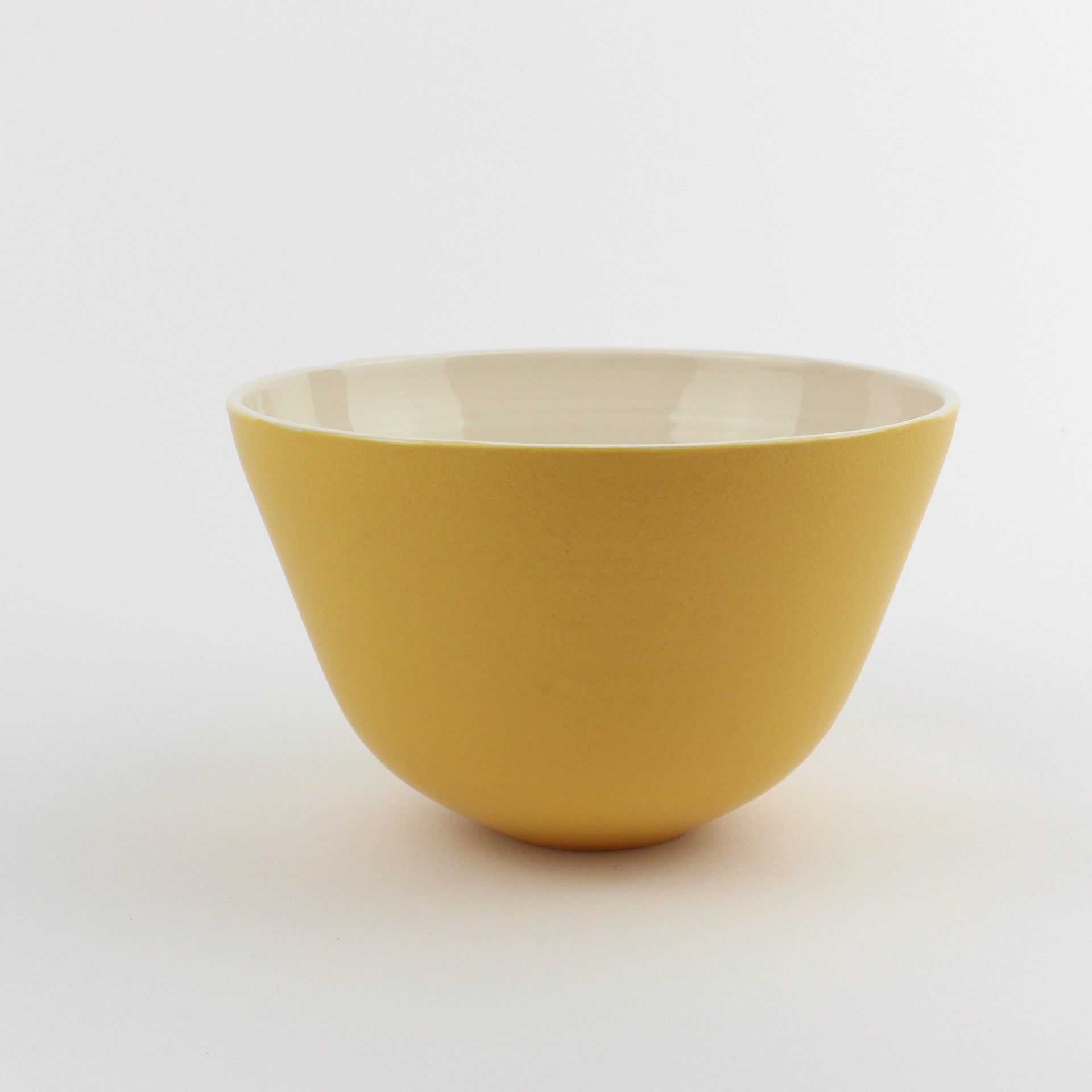 Lucy Burley's elegant and distinctive style has won her many fans and admirers. Her vessels are thrown on the wheel using white earthenware clay. She has developed a semi-matt earthenware glaze, smooth to the touch, to which she adds oxides and stains to obtain a wide spectrum of colours.