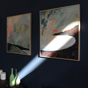 Back at the studio, her paintings begin with layering, mark making and following her intuition. She works across several pieces at once and as they develop she starts to form compositions within the chaos. At this stage, she references her sketchbooks and see how drawings made on location can inspire the structures of the pieces.