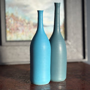 Lucy's vessels are thrown on the wheel using white earthenware clay. She has developed a semi-matt earthenware glaze, smooth to the touch, to which she adds oxides and stains to obtain a wide spectrum of colours. Her bottles and vessels look wonderful on their own - or as part of a collection. The interior glaze is watertight.