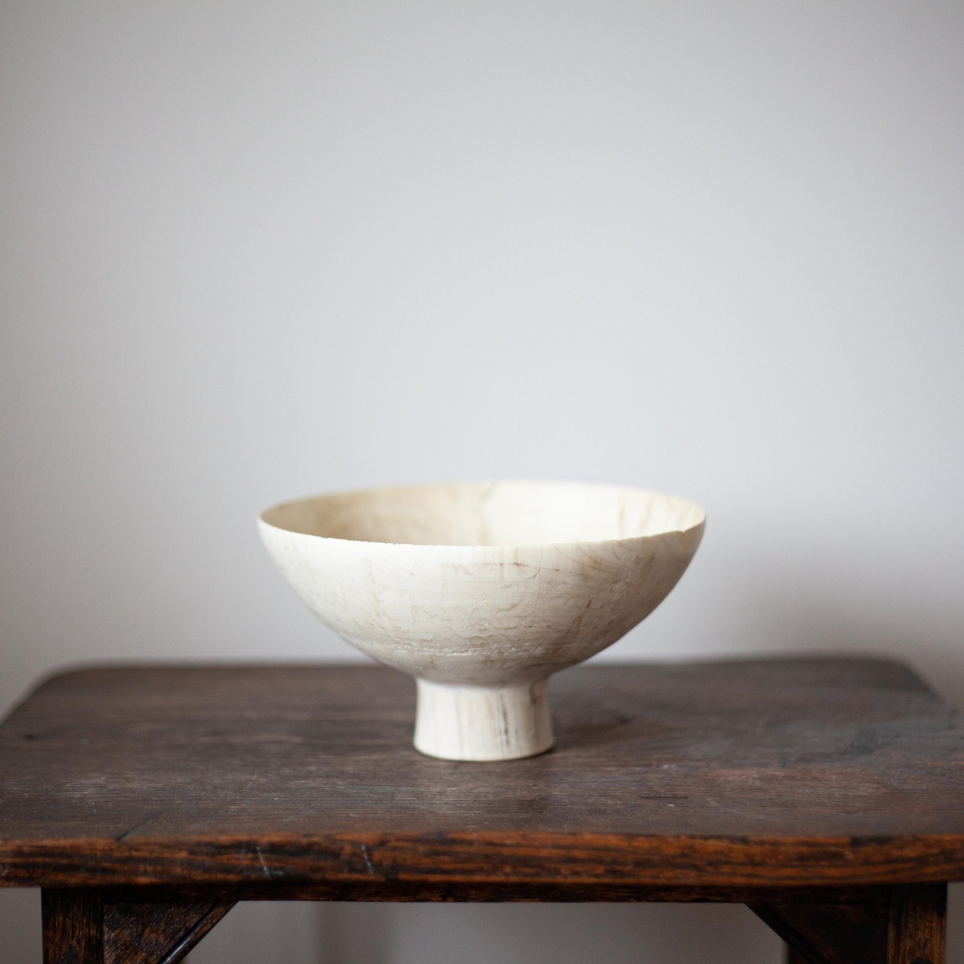 Jayne works in a range of different woods, but is best known for her pieces turned on a lathe from freshly cut oak. Working green enables her to explore the sculptural and aesthetic possibilities of a material that moves and changes shape as it dries. These pieces are turned to 1 millimeter in thickness before being left to dry and take their form naturally. Once dry, Jayne bleaches, stains, burns, embellishes, oils and waxes to create work that challengesexpectations of the material.