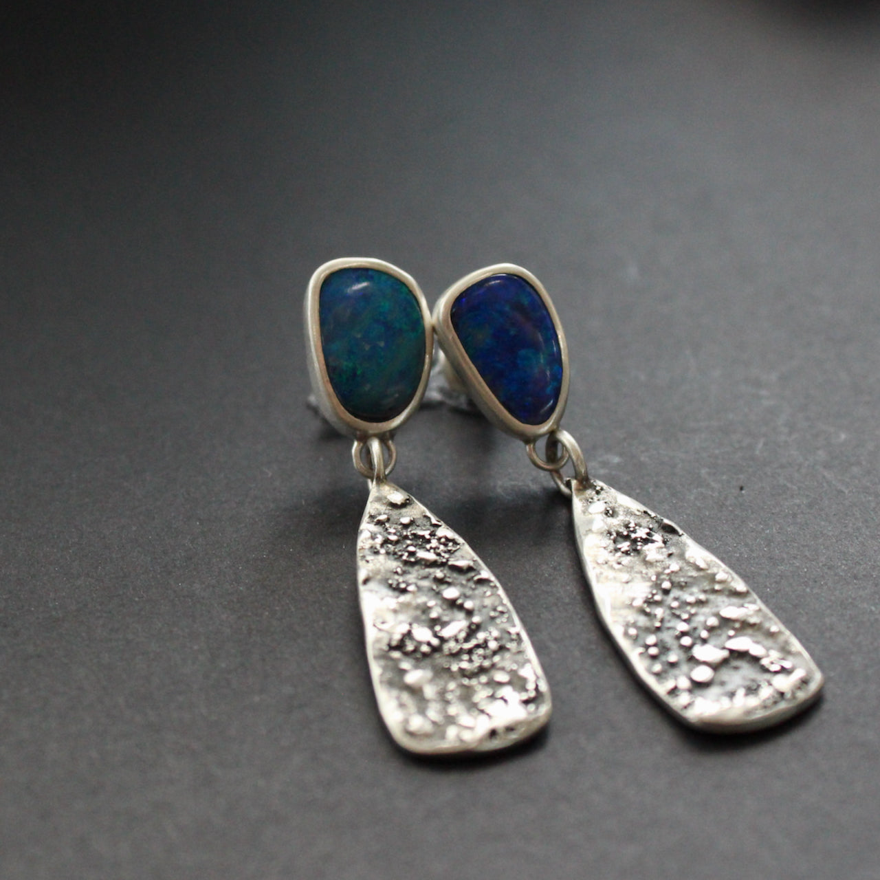 Carin's work is created using recycled sterling silver with the occasional gold accent. She creates organic textures by fusing, and the metal is given an understated frosted matte finish or a dark patina to bring out the character of the textured silver.