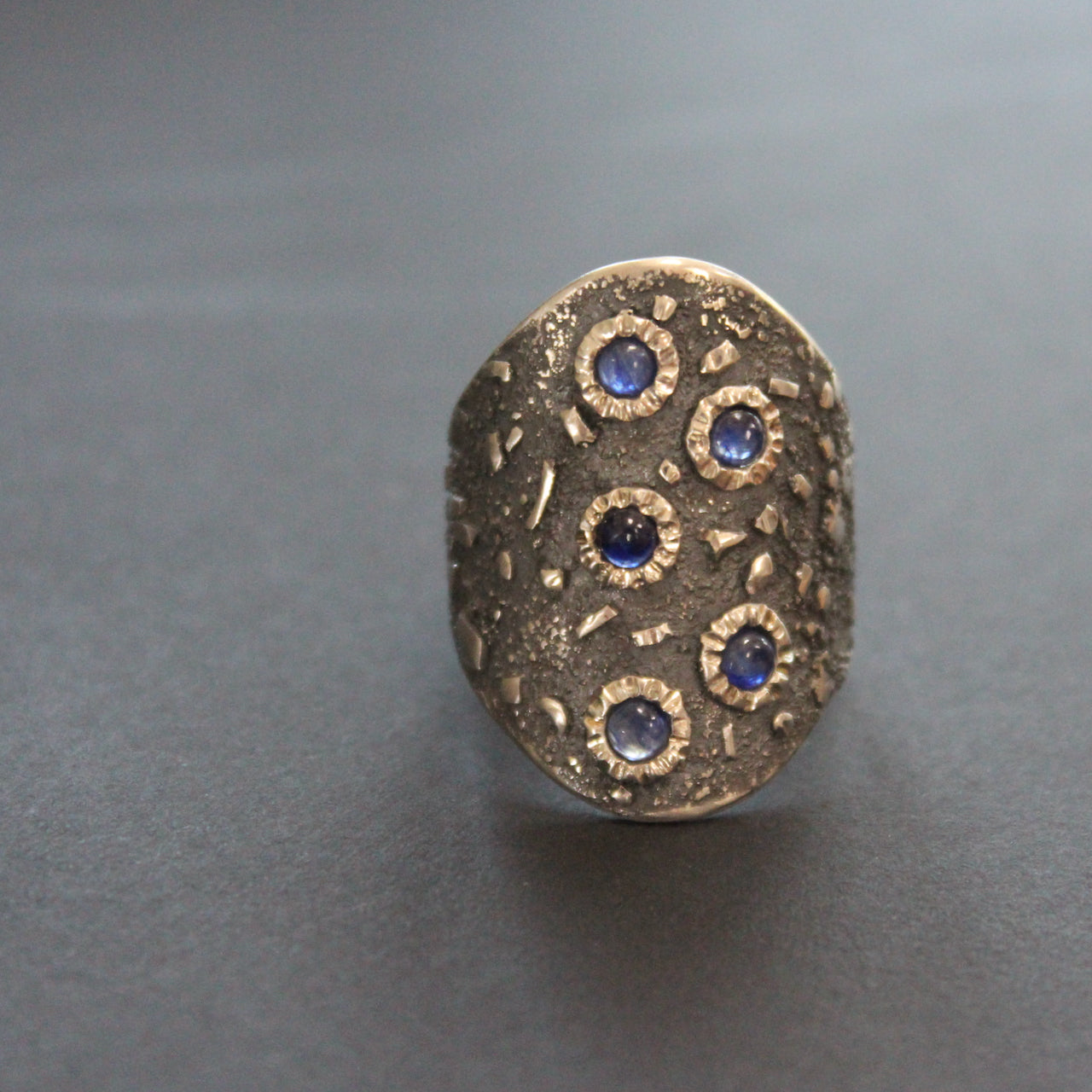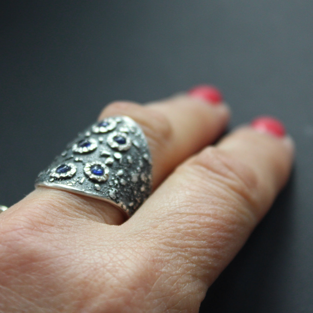Carin Lindberg - Blue sapphire saddle ring in textured silver