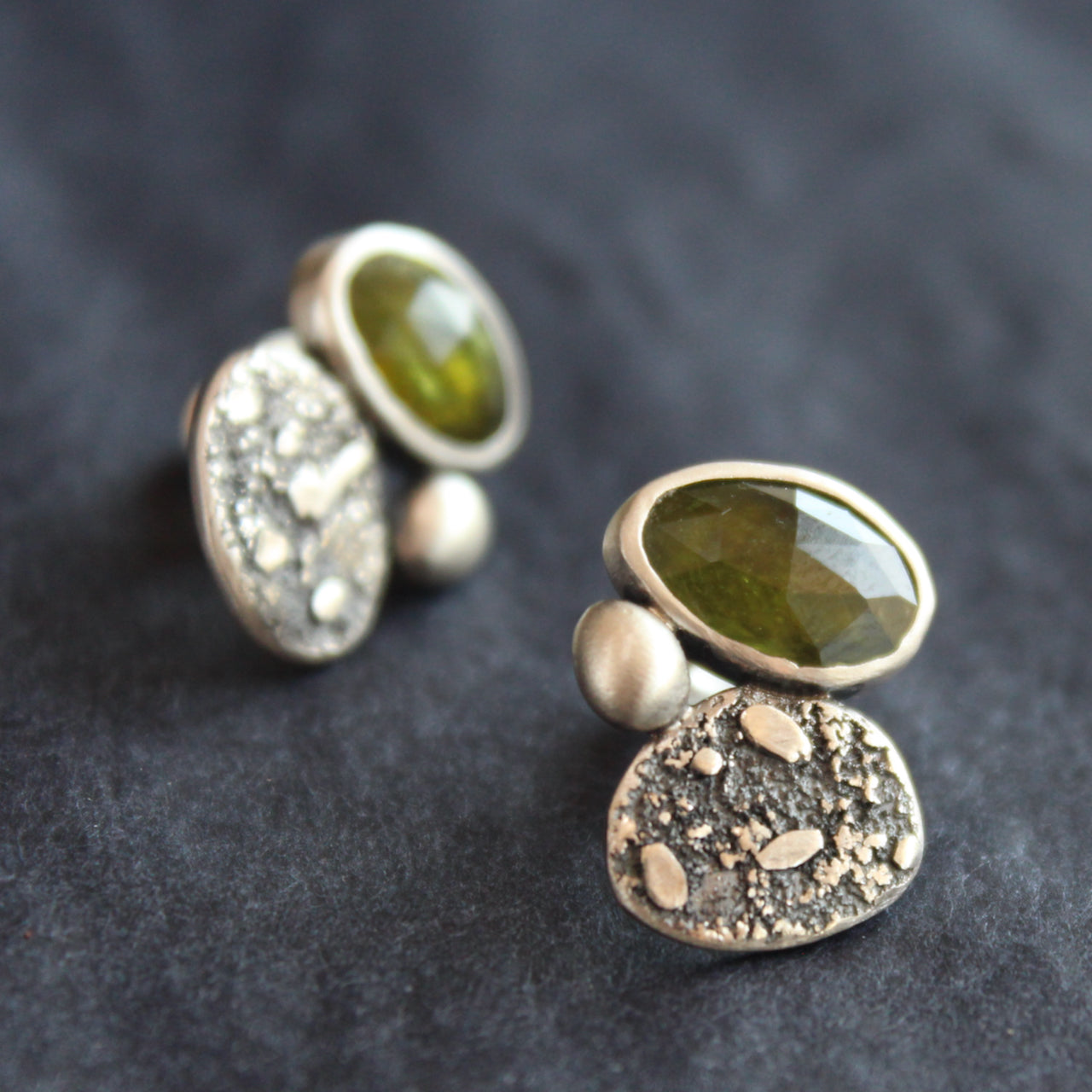 Carin's work is created using recycled sterling silver with the occasional gold accent. She creates organic textures by fusing, and the metal is given an understated frosted matte finish or a dark patina to bring out the character of the textured silver.