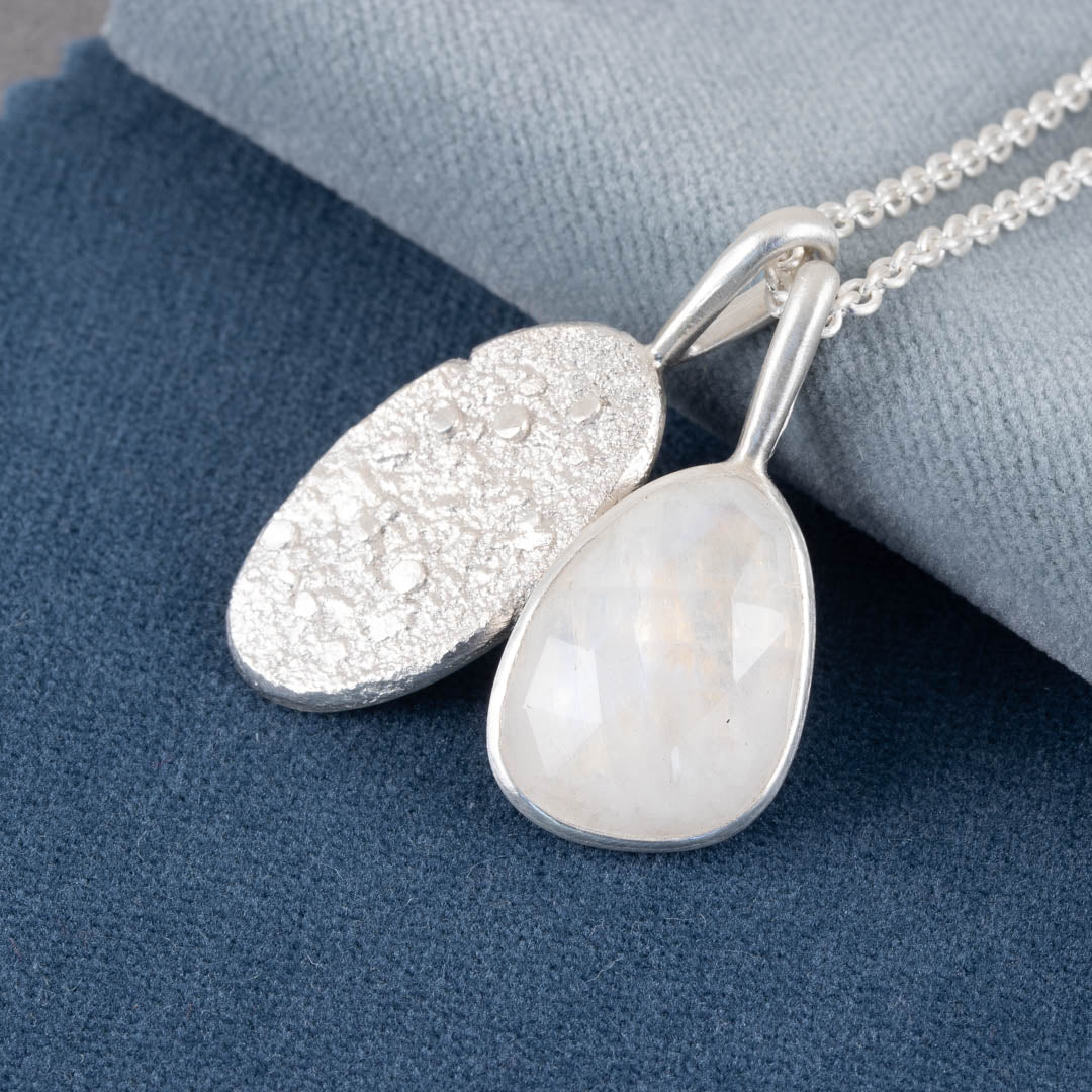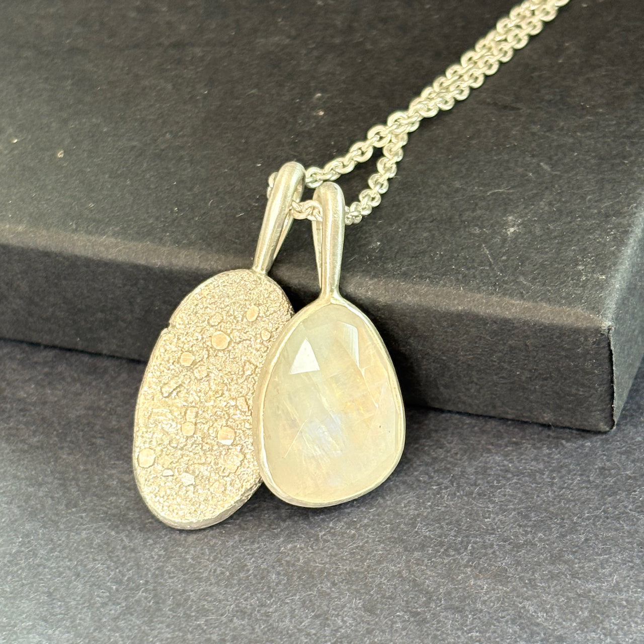 Carin Lindberg - Rainbow Moonstone textured silver duo pendant