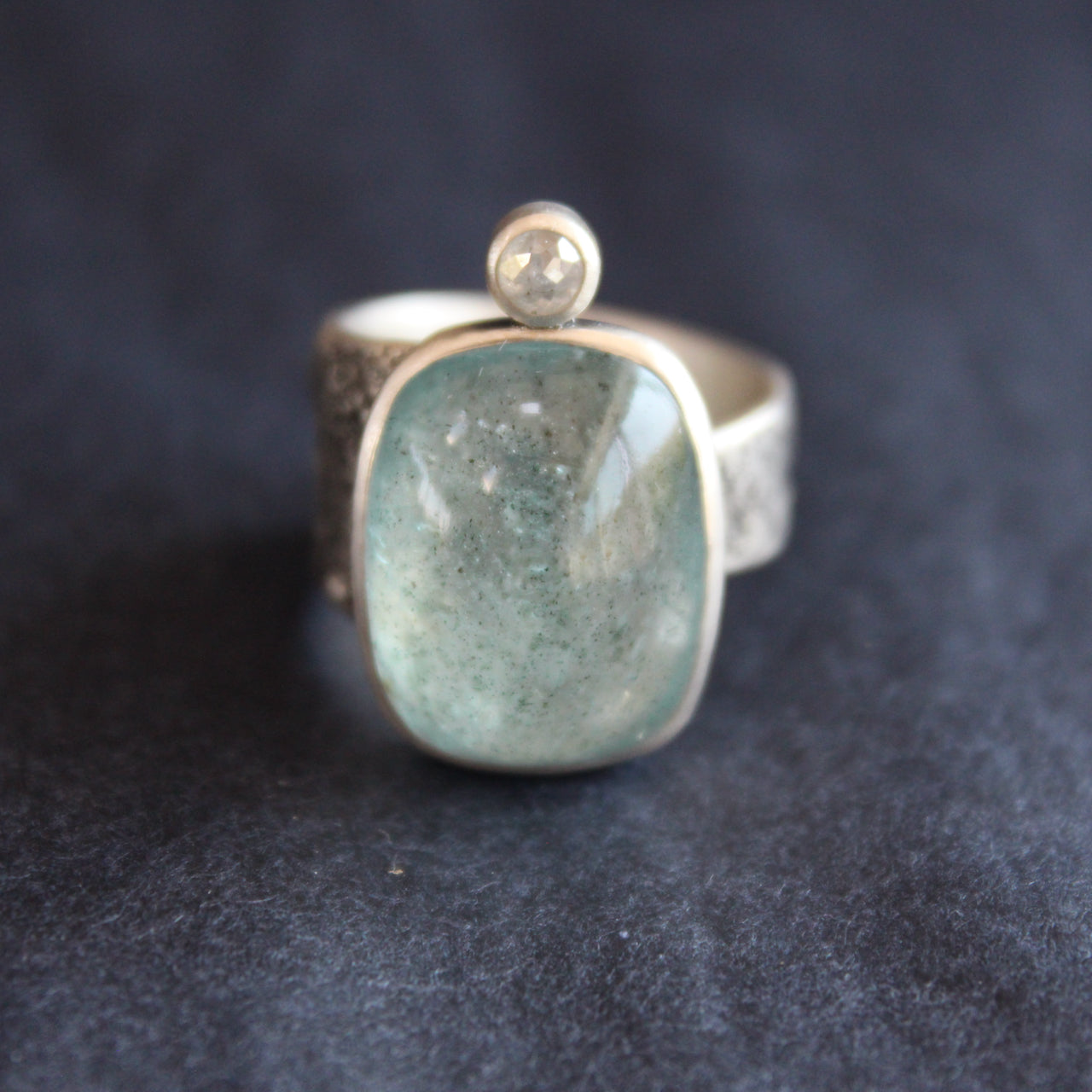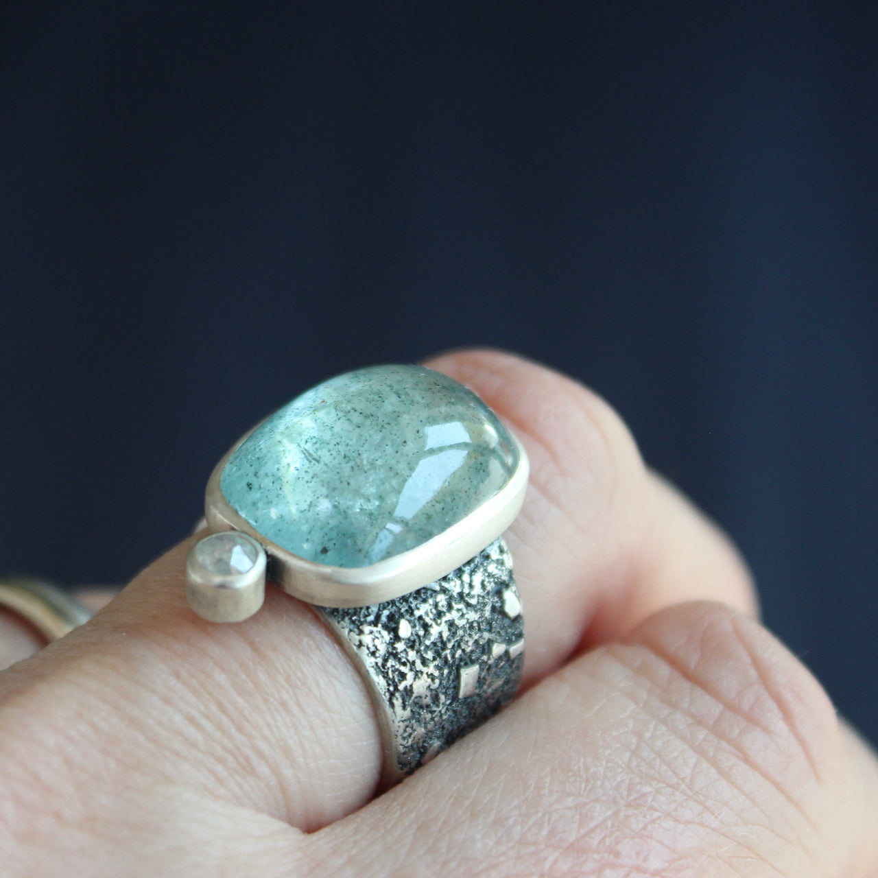 Carin Lindberg - Aquamarine and white diamond ring in textured silver