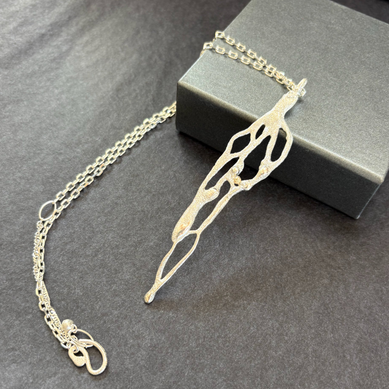 Hand sculpted seaweed and rockpool inspired, silver Sea Siren pendant, with delicate hand created surface detail, and gold accent. Silver chain with hand created silver detail.