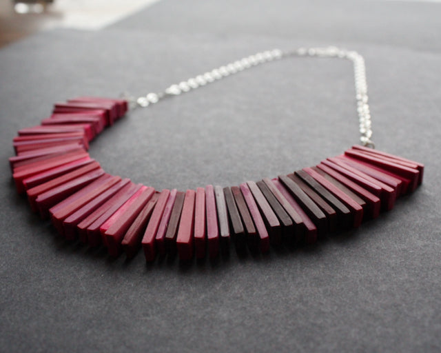 Clare Lloyd - modern Deco necklace, berry reds