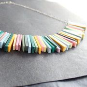 Clare Lloyd - modern Deco necklace, pinks, yellow and greens