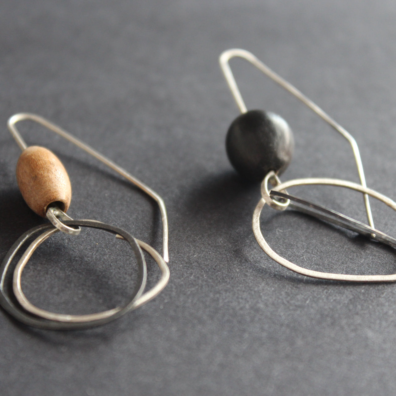 GIVEN: loop earrings. These sterling silver hoops are made with beads given to Lizzie by her sister. They are part of Lizzie's GIVEN collection, which focusses on using items within the work that have been given to Lizzie by people.