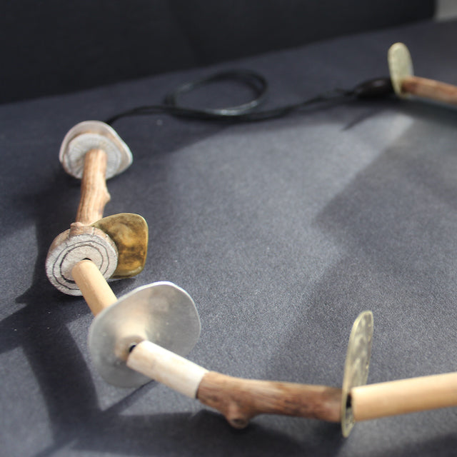 Lizzie Weir's jewellery celebrates the discarded, the abandoned and forgotten. The pieces Lizzie finds dictate the outcome, the reason they were chosen must be apparent in the final piece. It might be the sculptural shape of the sea battered wood, or the delicacy of a sea nut/seed that has found its way onto a windswept beach intact and with a huge journey trapped within its shell… Or maybe the metal arch rusted and discarded, its original purpose lost.