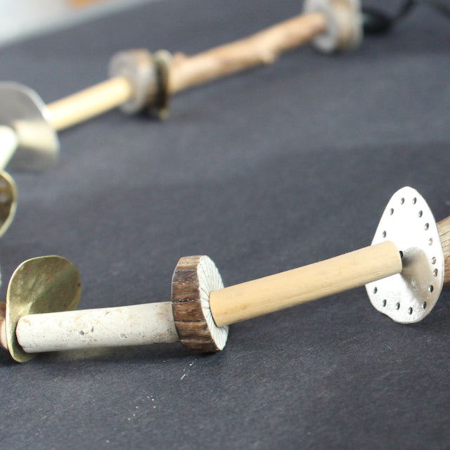 Sterling silver, recycled brass and handmade beans and vintage beads, length 35cm