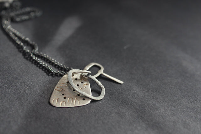 Lizzie Weir's jewellery celebrates the discarded, the abandoned and forgotten. The pieces Lizzie finds dictate the outcome, the reason they were chosen must be apparent in the final piece. It might be the sculptural shape of the sea battered wood, or the delicacy of a sea nut/seed that has found its way onto a windswept beach intact and with a huge journey trapped within its shell… Or maybe the metal arch rusted and discarded, its original purpose lost.