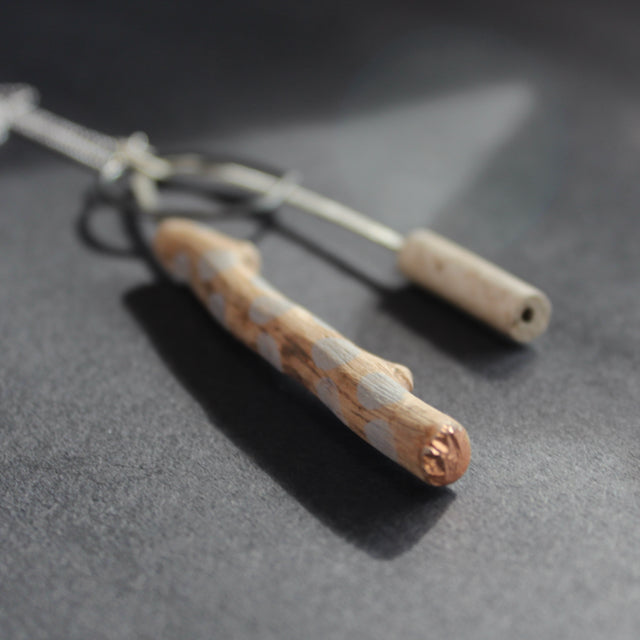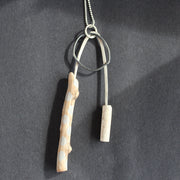 Sterling silver 18" chain with driftwood pendant, oxidised circle and clay pipe