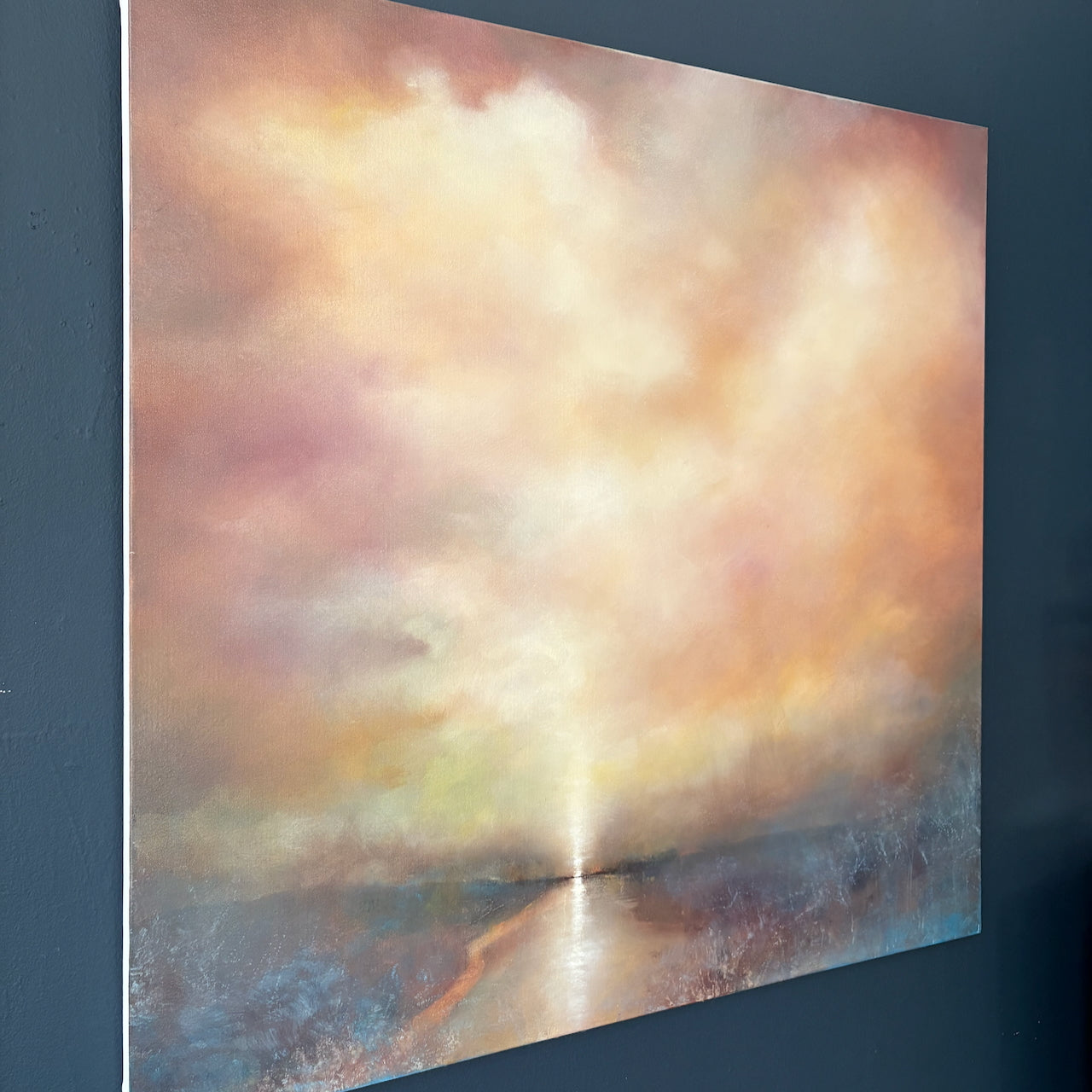 A sense of place dominates Ellis’s work which conveys ethereal and surreal landscapes dominated by atmospheric skies. A process which combines intuitive marks which suggest composition and the painterly push and pull of perspective through colour and tone. Through this ritual the paint evolves into constructed landscapes which seem to exist outside of a specific history and offer ambivalent versions of our world. The paintings are ambiguous and without narrative inviting the viewer to bring their own understanding of the manipulated space, a combination of real and imagined places which highlight the way that our autobiographies imprint into the spaces we inhabit.