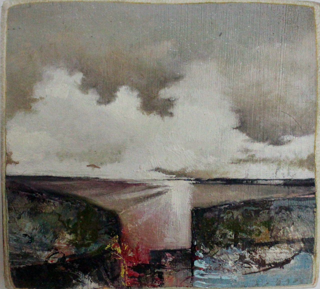 A sense of place dominates Ellis’s work which conveys ethereal and surreal landscapes dominated by atmospheric skies. A process which combines intuitive marks which suggest composition and the painterly push and pull of perspective through colour and tone. Through this ritual the paint evolves into constructed landscapes which seem to exist outside of a specific history and offer ambivalent versions of our world. The paintings are ambiguous and without narrative inviting the viewer to bring their own understanding of the manipulated space, a combination of real and imagined places which highlight the way that our autobiographies imprint into the spaces we inhabit.