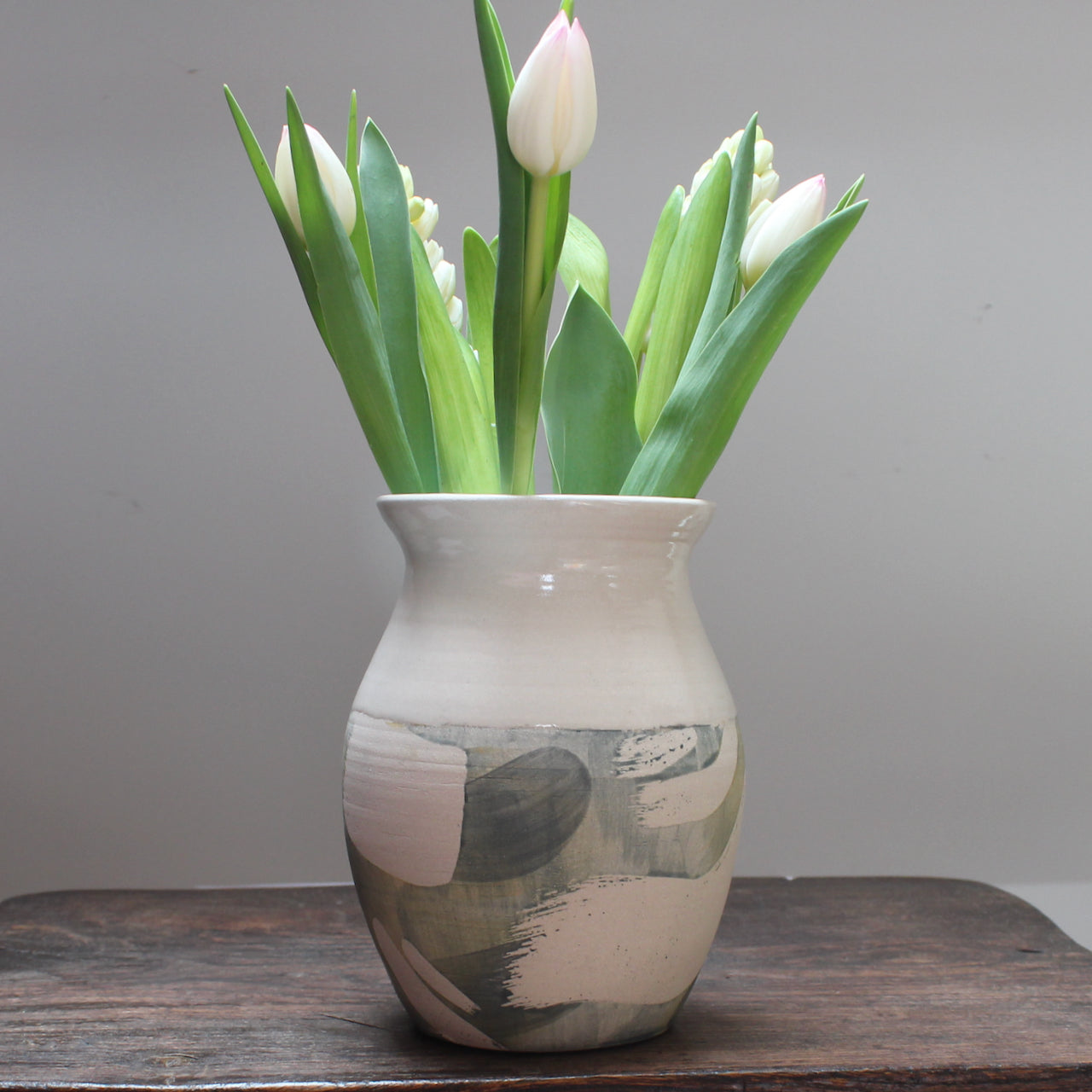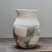 Kate's ceramic work draws inspiration from the simple beauty and intriguing surfaces of old gardening tools gathered from her grandfather's shed. The quiet forms of Kate's thrown pieces allow her sensitive decoration to become the focus of the work, while a colour palette of soft greens, greys, blues - with a burst of yellow - creates a cohesive collection. Kate is based in Suffolk.