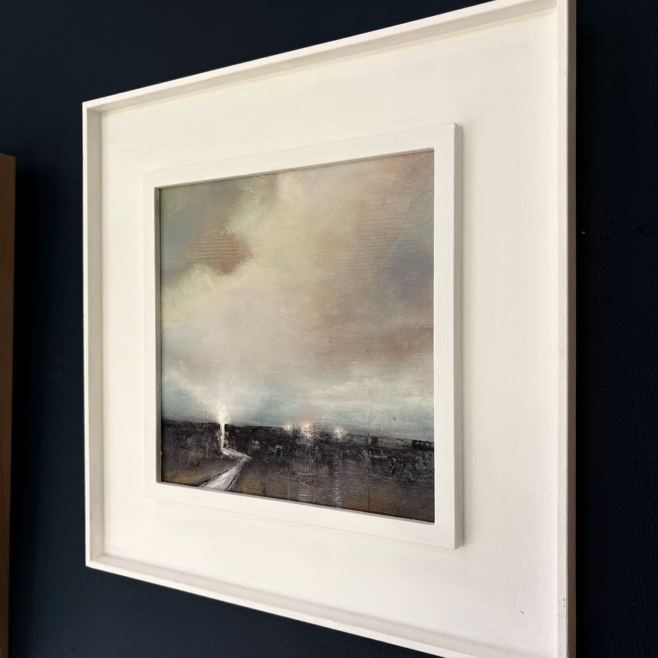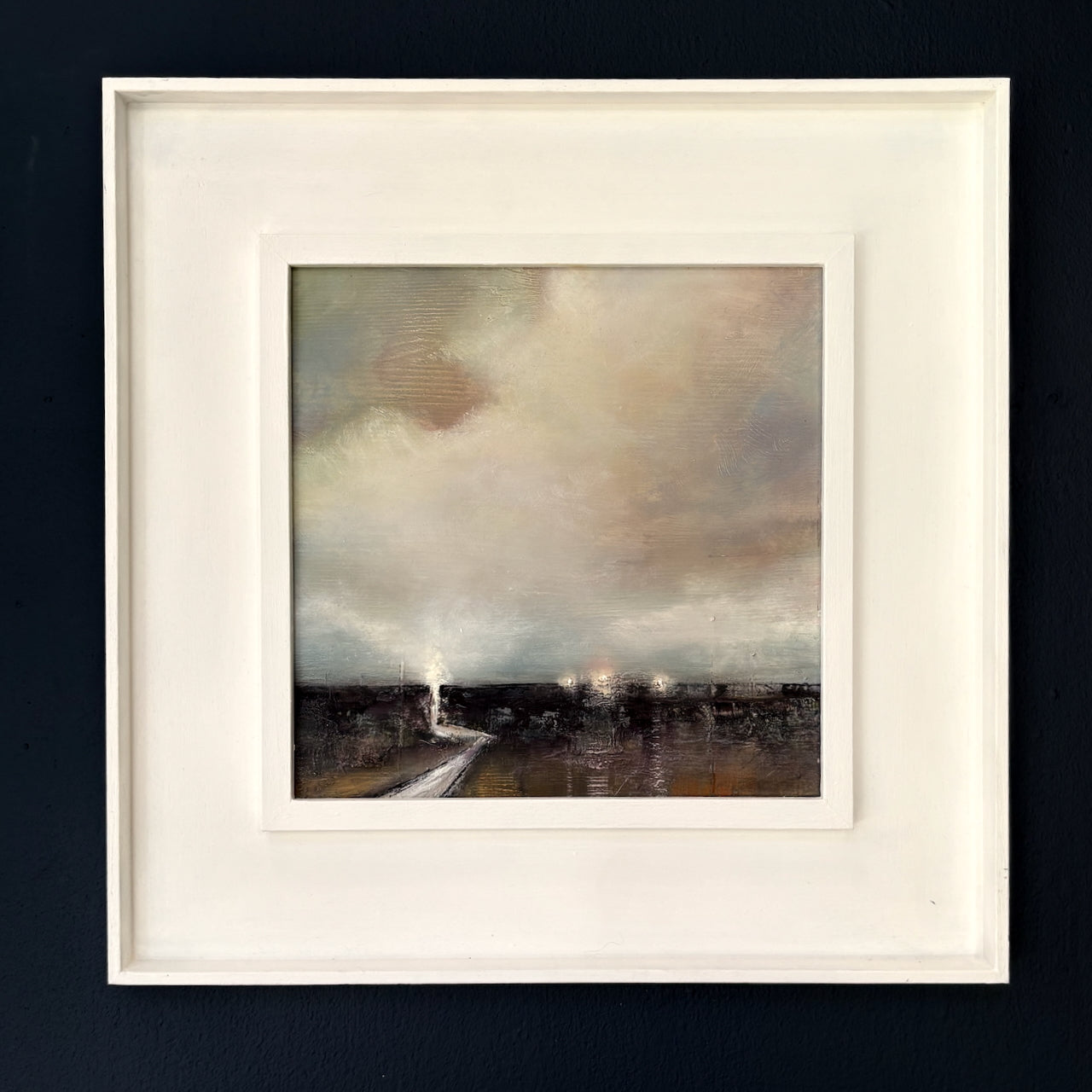 A sense of place dominates Ellis’s work which conveys ethereal and surreal landscapes dominated by atmospheric skies. A process which combines intuitive marks which suggest composition and the painterly push and pull of perspective through colour and tone. Through this ritual the paint evolves into constructed landscapes which seem to exist outside of a specific history and offer ambivalent versions of our world. The paintings are ambiguous and without narrative inviting the viewer to bring their own understanding of the manipulated space, a combination of real and imagined places which highlight the way that our autobiographies imprint into the spaces we inhabit.