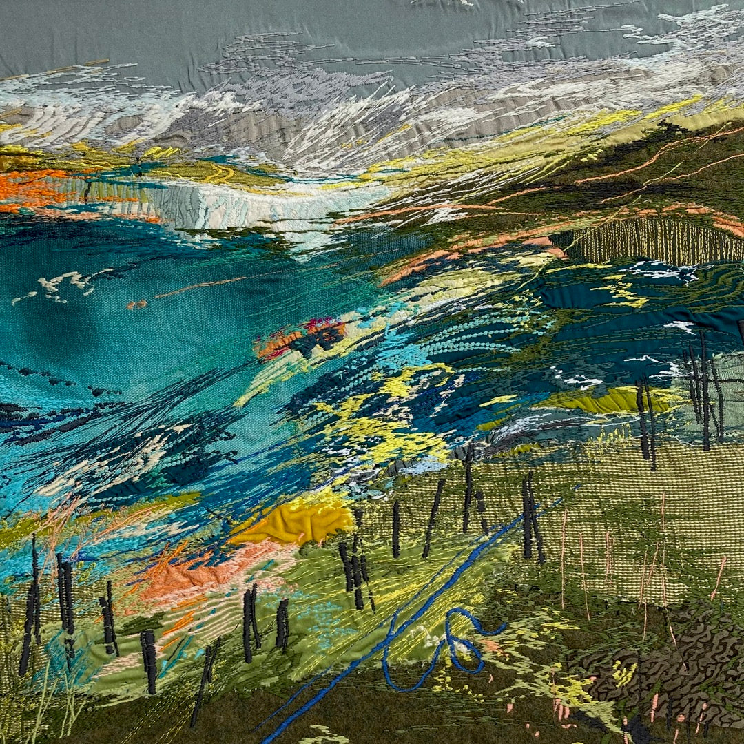 Sarah Pooley studied Fashion and Textiles at Liverpool, graduating with a BA(Hons) before working as a knitwear designer and then in Interior Design and soft furnishings. She is now a full-time artist pulling on her textile/design background and her love of the landscape in Cornwall and Scotland to create these unique embroideries.